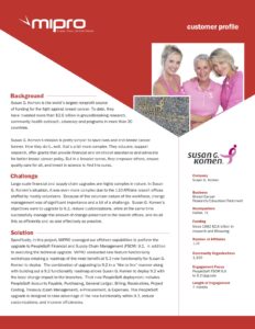 Susan G. Komen’s objectives were to upgrade to 9.2, reduce customizations, while at the same time successfully manage the amount of change presented to the branch offices.